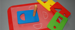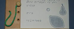 - Educational sets containing various objects (shapes, models) which come with tactile books and helpz understand the relation between objects and drawings, as well as spatial relations represented graphically.